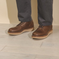 The 145 Oxford shoe is inspired by the working-class Oxfords of the mid-1900s. Details • Maryam Horsebutt (IT) • Tan Kip Lining • 5 AA Copper Brown Eyelets • Natural Edge Finish • Vibram 2021 Evaflex Beige Sole • Stitchdown Construction • Leather Toe Puff