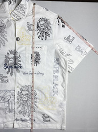 RARE BAPE BLACK Graphic Stitch Shirt - White Size: L Width: 24.5' Length: 29' Shoulder: 18' Sleeve: 11' Condition: excellent - new Price: 428 DHL EXPRESS DELIVERY 3-5 DAYS ETA WEEKLY MARKDOWN, Hit like to be notified SEND ME YOUR BEST OFFER GET THE SET FOR BIGGER DISCOUNT
