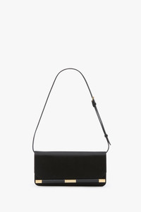 Embodying the house’s signature glamour, the 202 Clutch Bag is beautifully crafted in Italy from smooth calf leather and presented in classic Black. Deftly borrowing its talking points from traditional menswear codes, it is distinguished by a unique leather-covered cufflink detail. A removable shoulder strap allows for versatile styling, while an internal single compartment and small flat leather pocket ensure secure storage. Nodding to the heart of the Victoria Beckham brand – Victoria’s London studio – it is a sophisticated and streamlined evening clutch. Size & Fit - Height 11cm, Width 23cm, Depth 6cm, Max Drop With Strap 29cm Product Details - Clutch bag functionality with removable shoulder strap for multiple wear options - Leather covered cufflink hardware - Synthetic nappa leather lining - Internal single compartment, with flat pocket - 100% Leather - Wipe clean with a soft, dry cloth - Made in Italy