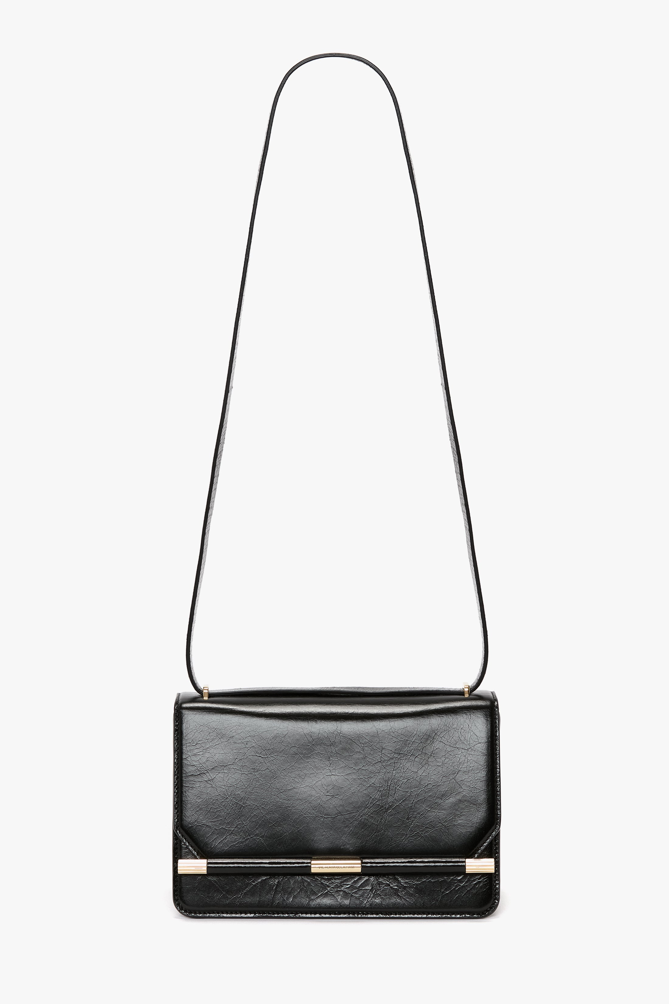 Effortlessly sophisticated, the 202 Crossbody Bag is crafted from a glamorous high-shine distressed calf leather. Suitable for styling as a shoulder or crossbody by virtue of a strap that slides through two metal bridges, it features a double internal compartment and small flat leather pocket for secure storage. Finished with elevated gold hardware and the house’s signature stamped address of Victoria’s London studio (N.202) followed by a unique serial number, it is a beautifully streamlined new-season accessory. Product Details - Can be worn as a shoulder bag or as a cross body by sliding the strap through the two metal bridges - Internal double compartment and a small flat leather pocket - Features our signature gold branding with VB logo and a unique code - New distressed shiny calf - Height: 16cm, Width: 23cm, Depth: 10cm, Drop: 25.5cm - Shorter length, Drop: 50cm - Longest length - 100% Calf leather - On calf leathers, regularly apply a small amount of nourishing cream and buff gently using a cloth - Made in Italy