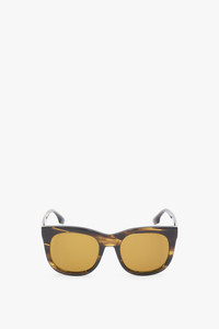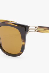 With a timeless silhouette that is flattering to all face shapes, the Acetate B Frame Sunglasses have a category 2 lens protection and a decorative B Buckle on the temple. Presented in dynamic Striped Khaki Horn, they are an iconic style in the Victoria Beckham eyewear edit. Size & Fit - Lens: 54mm, Bridge: 21mm, Temple: 145mm Product Details - 100% Acetate - Wipe clean with a soft, dry cloth - Made in Italy - B Buckle on temple