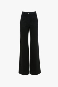 Crafted from stretch denim and presented in Washed Black, the house’s signature Alina Jeans have a high waist and wide leg for a classic 1970s silhouette. Traditional patch pockets, a leather patch and Victoria Beckham embroidered logo add the house’s signature finesse. - Wide leg - High waisted - Stretch denim - Solid colour wash - Patch pocket - Leather patch - VB logo embroidery - Button fly - 98% Cotton 2% Elastane - Made in Italy SIZE & FIT - Fits true to size, take your normal size
