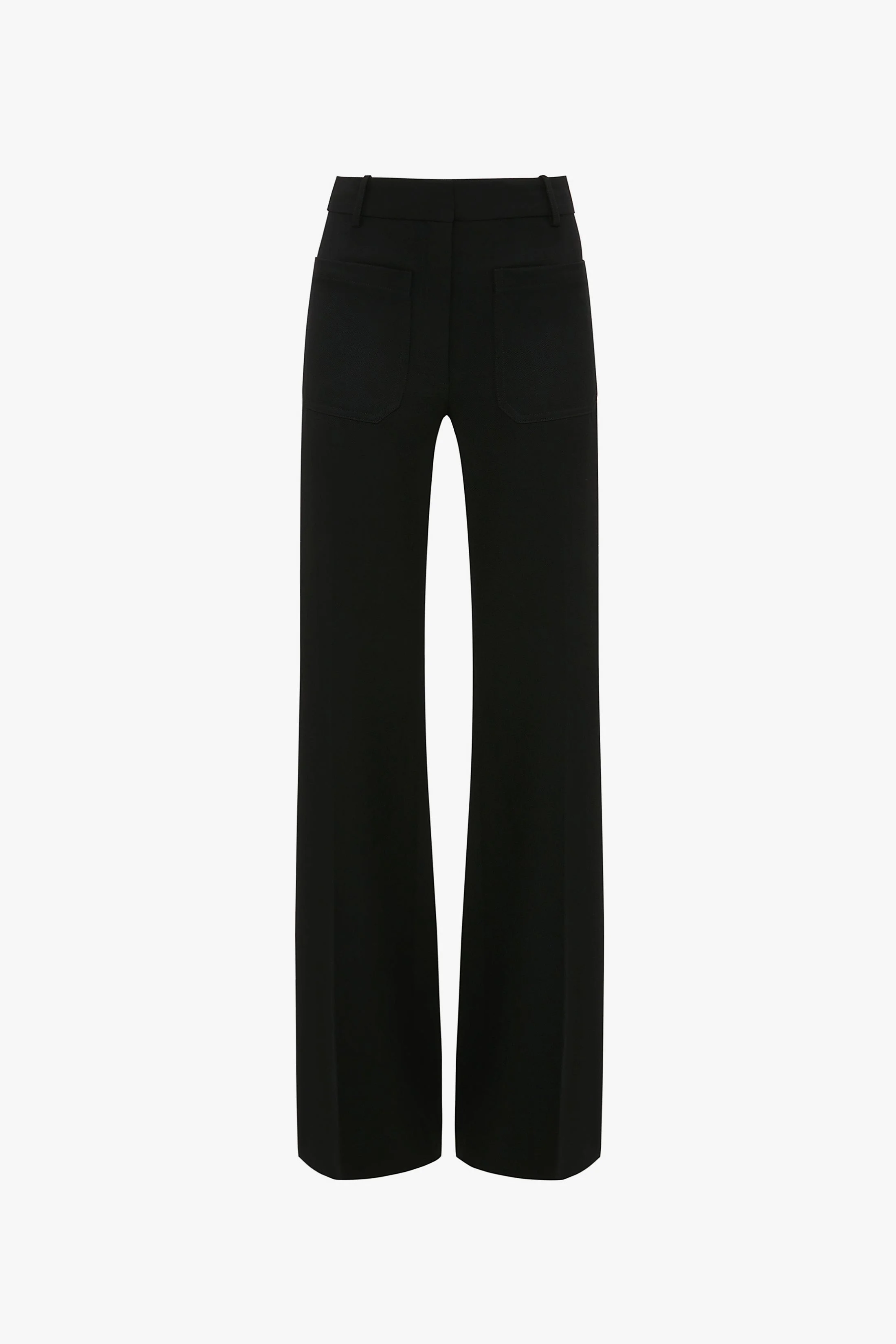 A classic from the Victoria Beckham archive, the Alina trouser draws on 70s style references, with modern flair. In universally flattering black, the structured trouser has a super-high waist and flared leg for a flattering silhouette. Patch pockets add an attractive design detail. Size & Fit - Fitted style. For a more comfortable fit, we advise taking a size up - 4cm hem for length alteration Product Details - Grain De Poudre Blend - 55% Polyester 45% Wool - Specialised Dry Clean Only - Made in Portugal
