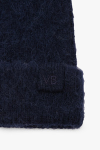 A super-soft alpaca blend gives the Alpaca Hat in Navy a cosy, tactile finish. A ribbed turn-up hemline allows for versatile styling, while an embroidered Victoria Beckham tonal knit tab adds an elevated finishing touch. Size & Fit - One size Product Details - Soft alpaca knit hat - Integral rib turn up hem - VB logo embroidered tonal knit tab - 61% Lambswool 20% Nylon 19% Alpaca - Made in China