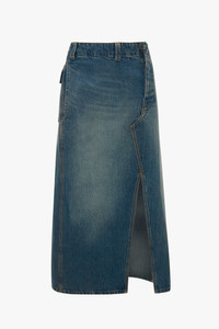 A contemporary asymmetric cut brings fresh energy to the classic denim skirt. Sitting below the natural waistline for a relaxed off-duty aesthetic, the Asymmetric Utility Skirt has side seam pockets, a back patch pocket and tobacco topstitching. Presented in Washed Blue, it embodies casual sophistication. Styled with the High Neck Top, Frame Belt & Sloan Mule Size & Fit - The model height is 5'11"/180cm and is wearing a size UK 6 - Design to fit 4cm below the natural waist - Fits true to size, take your regular size Product Details - Washed blue denim - Asymmetric design - Splits at front and back skirt - Side seam pockets - Back patch pocket - Tobacco topstitching details - 100% Cotton - Machine wash at 30C - Made in Italy