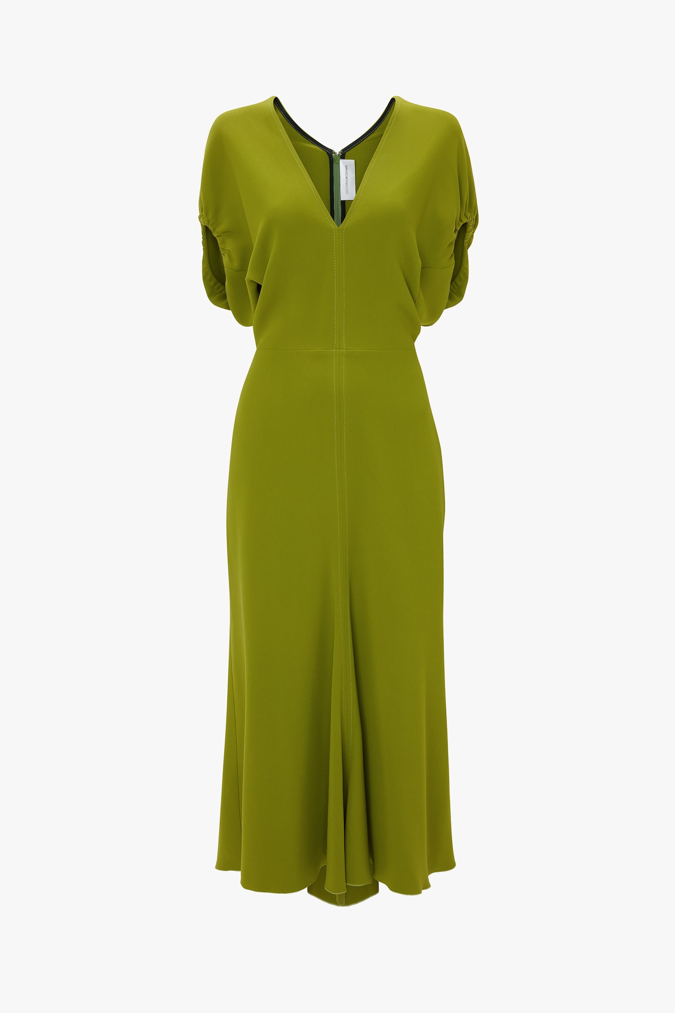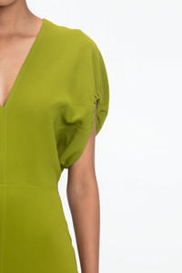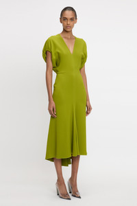 Directional sleeve detailing brings a discreet point of difference to the house’s signature midi dress style. Characterised by short full sleeves with tactile rope edging, the Blouson Detail Midi Dress in Parakeet also has a V neckline with internal binding and a longer-length hemline at the back for added fluidity. Styled with the PVC Heel Size & Fit - Fits true to size, take your regular size - The Model height is 5’11’’/ 180cm and is wearing a size 6 Product Details - Midi length - Hem graduates to be slightly longer at the back - Front v-neckline - Blouson short sleeve - Rope detail on sleeve opening - Internal binding detail on neckiine - Concealed zip with hook and eye closure at back - 50% Viscose 47% Acetate 3% Elastane - Dry clean only - Made in Portugal