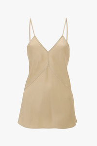 This 1990s-inspired Cami Top is reimagined for the modern wardrobe with a V-neckline, rouleau straps with excess for alteration and front and back diagonal seams with topstitch detailing. Crafted in tactile satin, it comes in an attractive shade of Macadamia. Size & Fit - Fits true to size, take your regular size Product Details - Satin fabrication - Self rouleau straps with excess for alteration - Front and back diagonal seam detailing with topstitch - Fits true to size, take your regular size - 71% Acetate 29% Viscose - Dry clean only - Made in Portugal