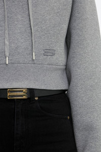 Cropped Structured Hoodie In Grey Marl