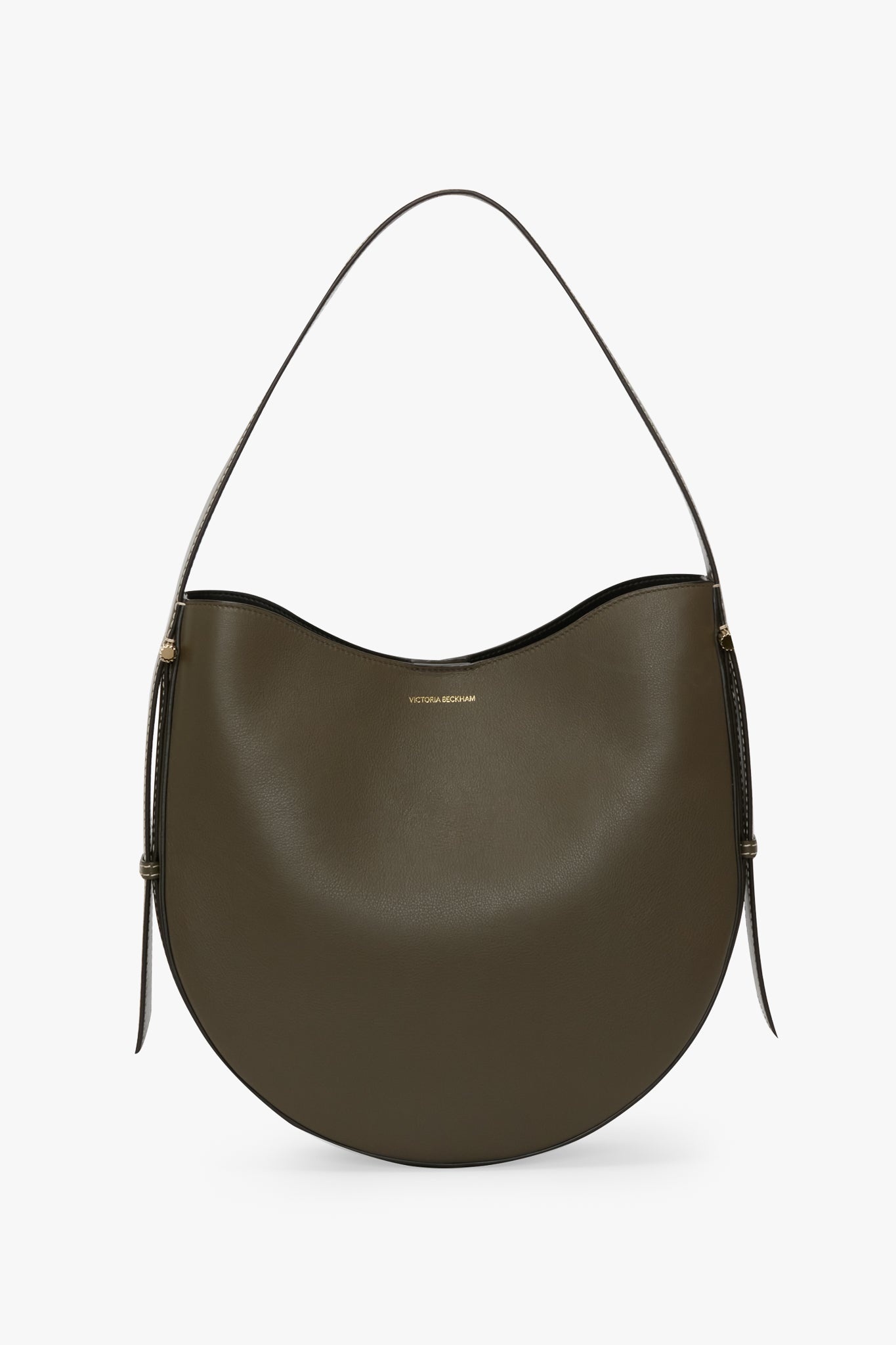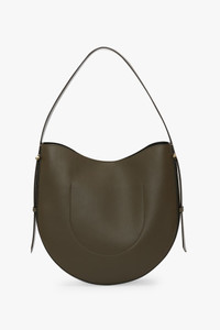 The Dia Hobo Bag expertly marries beauty and utility. Crafted from luxurious smooth calf leather, it has a soft, rounded silhouette with an adjustable strap for a relaxed aesthetic and cufflink-inspired gold hardware for added polish. Finished with the house’s signature gold Victoria Beckham branding and unique serial code, it is presented in Dark Khaki for the new season. Size & Fit - Height 57.5cm, Width 34cm, Depth 9cm Product Details - Cufflink inspired hardware - Smooth calf body - Small internal slip pocket - On calf leathers, regularly apply a small amount of nourishing cream and buff gently using a cloth - Made in Italy