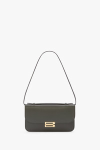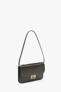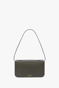 New to the Victoria Beckham leather goods edit, the Dorian Pochette is a polished evening wear handbag with a structured top handle and a removable strap. Made in Italy from shiny calf leather and microsuede lining, it has the house’s signature B Frame, split-lock hardware and an internal double compartment with flat pocket. Presented in Dark Olive, it has an effortless sophistication. Size & Fit - Height 14.5cm, Width 25cm, Depth 1.5cm Product Details - Top handle functionality, with additional removable shoulder strap - Signature B frame split-lock hardware - Shiny calf, 100% leather - Microsuede lining - Internal double compartment, with flat pocket - 100% Leather - Wipe clean with a soft, dry cloth - Made in Italy