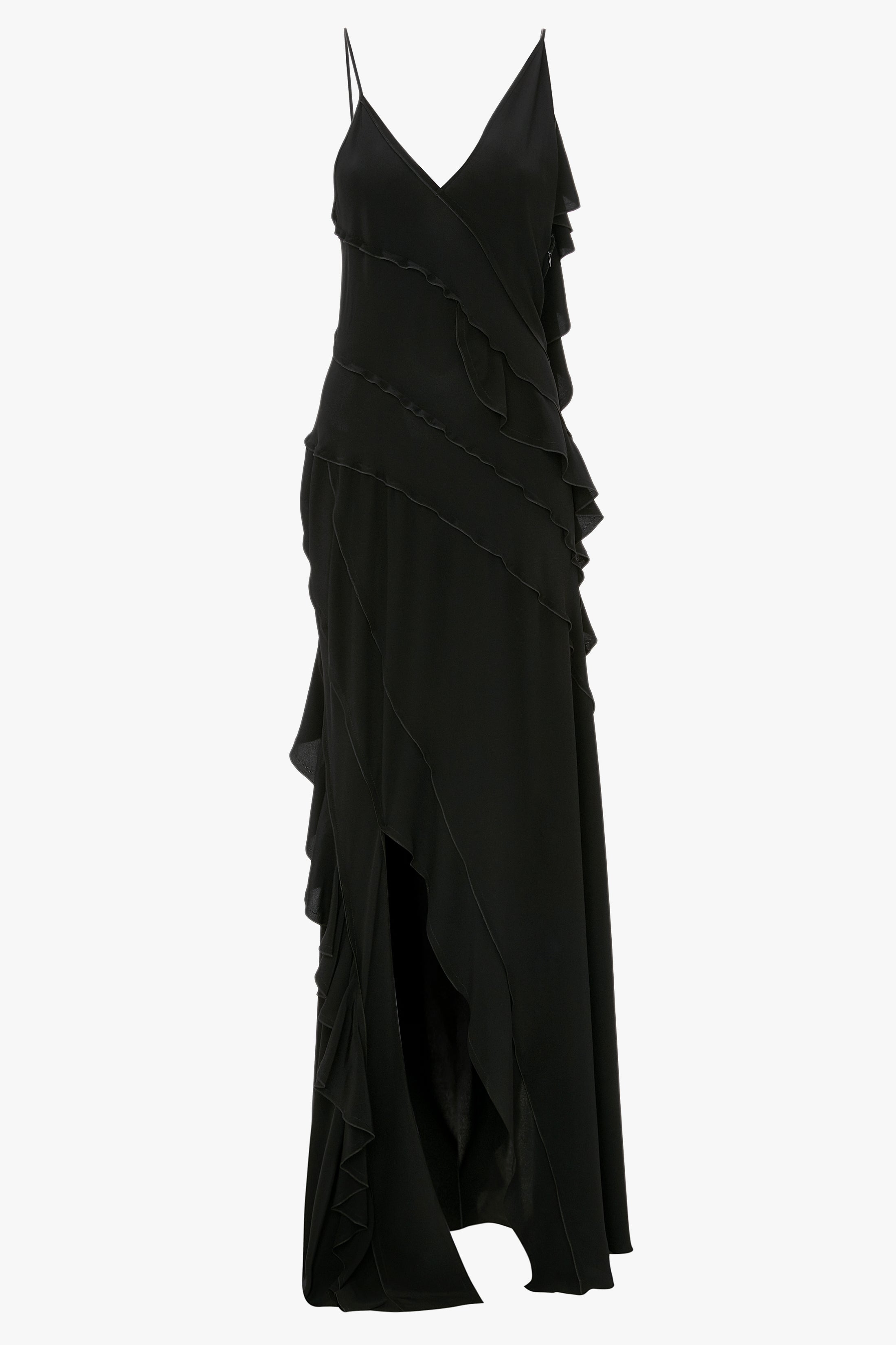 Crafted in 100% silk, the romantic ruffles of the Asymmetric Spiral Seam Bias Dress embodies modern femininity. Contemporary design features include a soft V-neck silhouette and side split, front frill detailing and thin spaghetti straps for a sophisticated nod to the ’90s – one of Victoria’s favourite decades. Flattering spiral seams add a contemporary twist. Styled with the Perfume Bottle Necklace, Cuff and the High Heel Size & Fit - Fits true to size, take your regular size - The model height is 180cm and is wearing a size 6 Product Details - Crepe de Chine - Asymmetric design - Exposed seams - Splits in the front and back of the skirt - Side zip with hook & eye closure - 100% Silk - Specialised Dry Clean Only - Made in UK