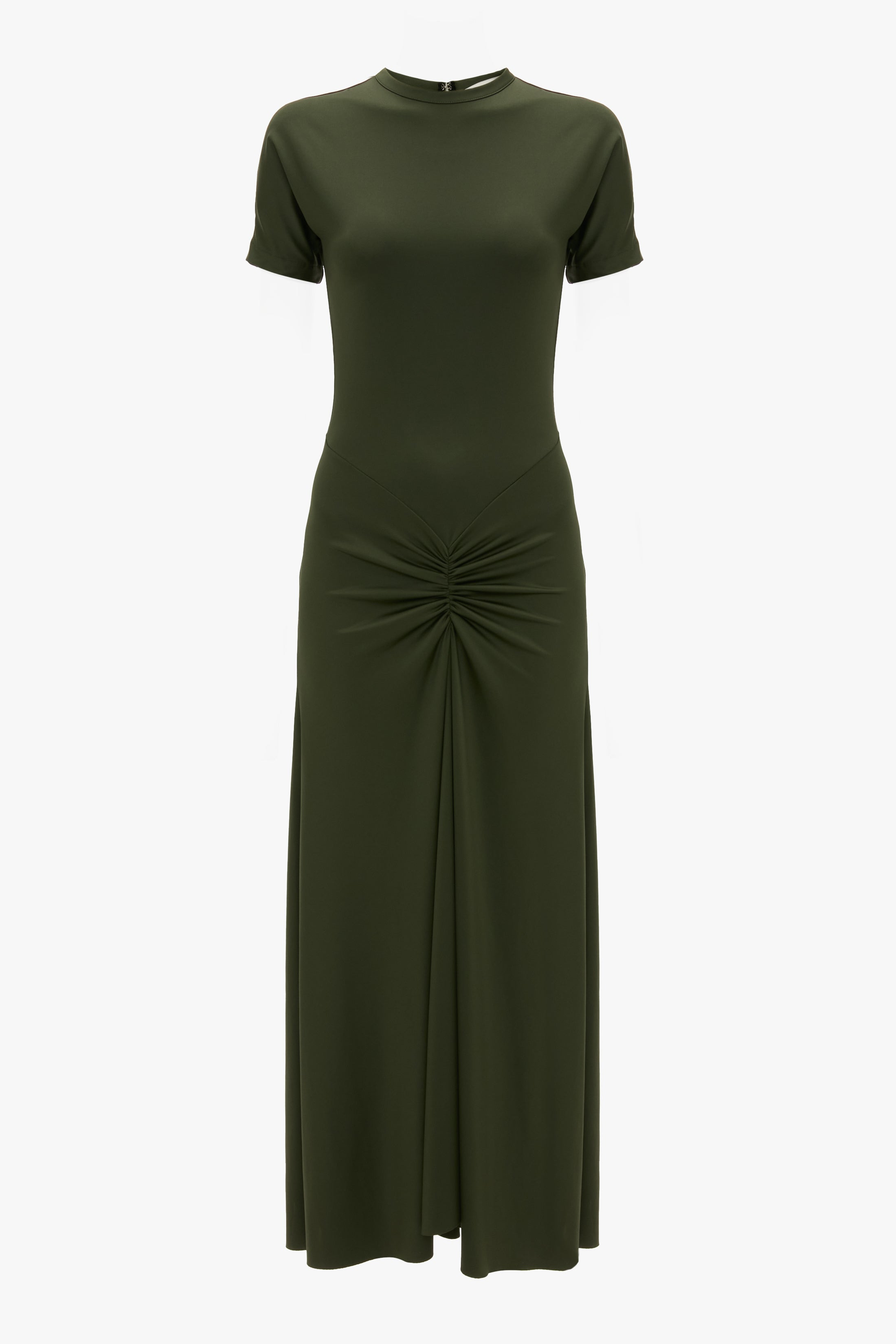 Gathered Waist T-Shirt Midi Dress In Oregano