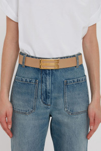 Add a contemporary point of difference to your new-season wardrobe with the Jumbo Frame Belt, presented in a subdued shade of Camel for the new season. Crafted from smooth calf leather and embellished with gold hardware for an elevated finish, it will bring a sophisticated finishing touch to any outfit. Size & Fit - Fits true to size, take your regular size - Small: Length 70cm, Width 38mm - Medium: Length 80cm, Width 38mm - Large: Length 90cm, Width 38mm - X large: Length 100cm, Width 38mm Product Details - Smooth Calf Leather - Luxury gold plated hardware - 100% Calf Leather - Wipe clean with a soft, dry cloth - Made In Italy