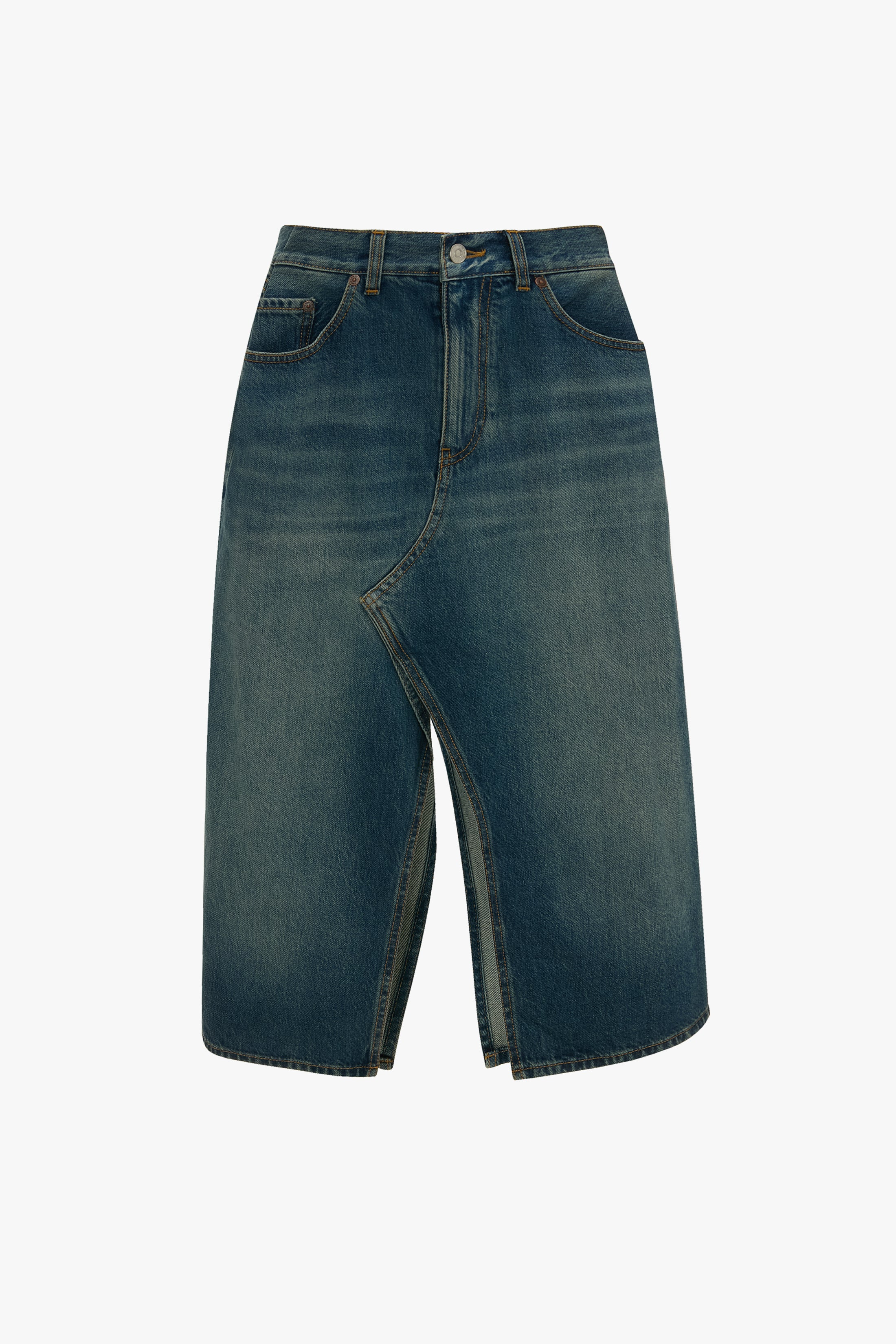 Kick Pocket Denim Skirt In Mid Blue Wash