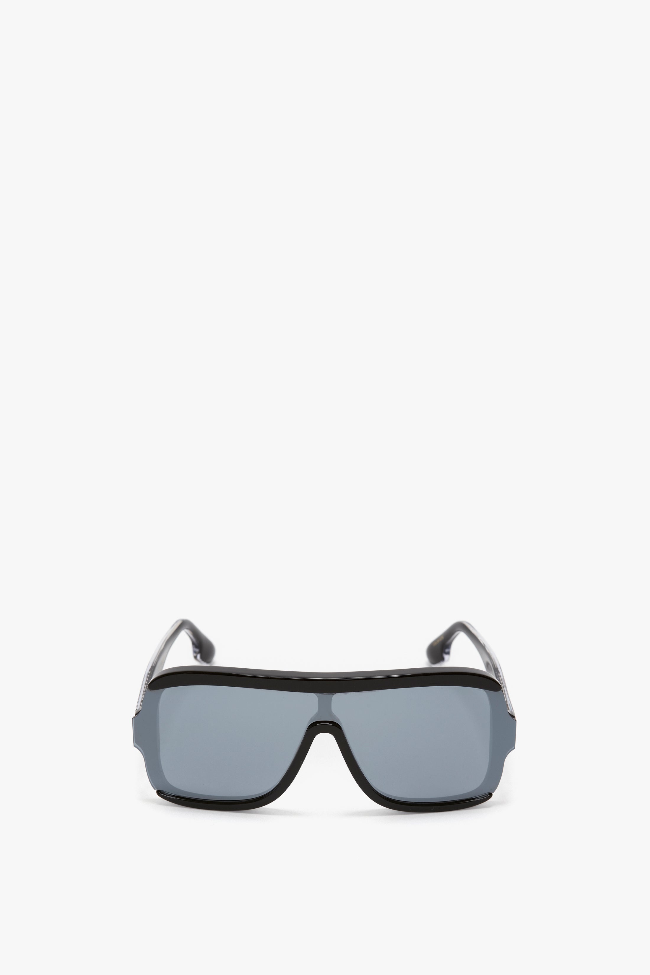 Layered Mask Sunglasses In Black-Silver-Mirror