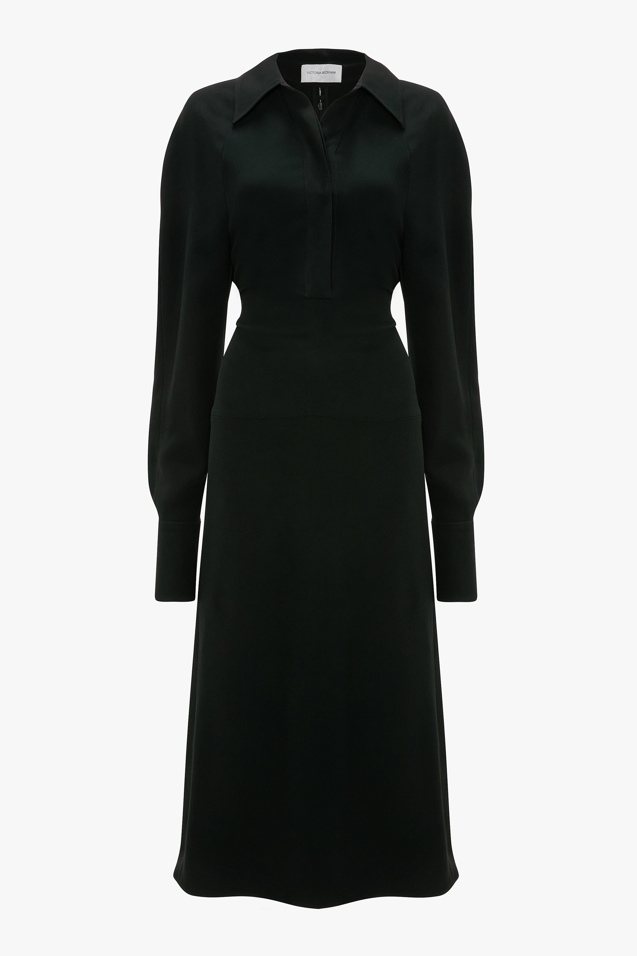 Relaxed tailoring defines the Long Sleeve Polo Collar Dress. With raglan sleeves, a traditional collar and concealed front placket, the dress has a masculine undertone, which is counteracted by a feminine skirt with longer-length hem at the back. Black branded shirt buttons along the front placket and at the cuffs and contrast topstitching at the sleeve placket complete the look. Styled with the Harlow Stiletto Sandal Size & Fit - Fits true to size, take your regular size - The model height is 5'11"/180cm and is wearing a size UK 6 Product Details - Collar with concealed front placket - Raglan sleeve - Black branded shirt buttons at front placket and cuffs - Pleat detail on back - Contrast topstitching at sleeve placket - Hem graduates to be slightly longer at the back - 50% Viscose 47% Acetate 3% Elastane - Dry clean only - Made in Lithuania