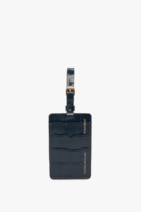 Luggage Tag In Midnight Blue Croc Embossed Leather