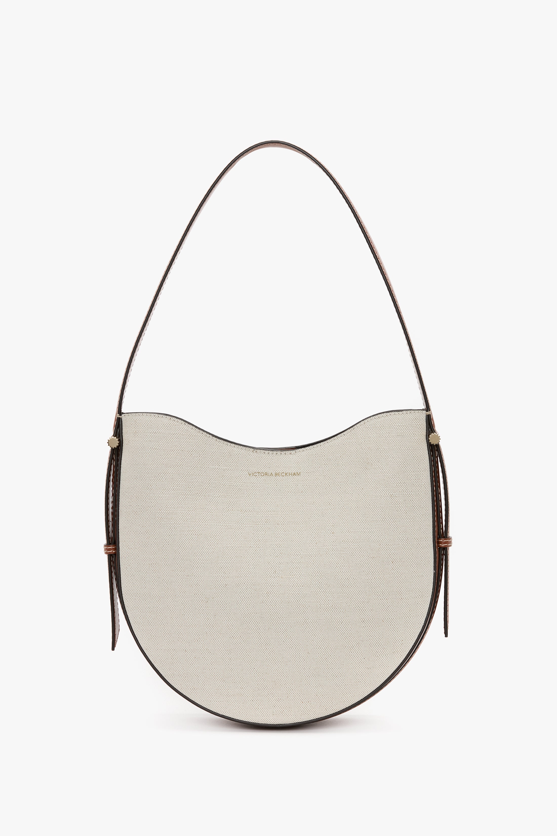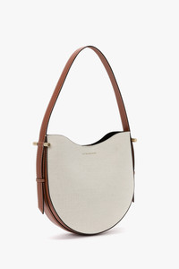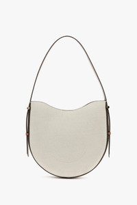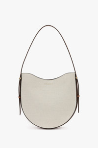 The Medium Dia Hobo Bag has a sophistication that is rooted in practical and polished design codes. Crafted from canvas for a utilitarian point of difference, it has a softly rounded silhouette, gold cufflink hardware and Tan leather accents. A magnetic closure and small internal slip pocket allow for secure storage while the house’s signature gold branding, including a Victoria Beckham logo and unique serial code inside the bag, add an elevated talking point. Size & Fit - Height: 24.5cm, Width: 27.5cm, Depth: 7cm, Drop With Strap: 22cm Product Details - Round structured silhouette - Magnetic closure - Small internal slip pocket - Cufflink hardware details - Features our signature gold branding with VB logo and a unique code inside of the bag - Canvas - 100% Leather - On calf leathers, regularly apply a small amount of nourishing cream and buff gently using a cloth - Made in Italy