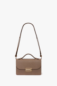 A new silhouette to the Victoria Beckham leather goods edit, the Mini Dorian Bag in dove grey is exquisitely crafted in Italy from textured calf leather and microsuede lining. It has a removable ‘smart strap’ with snap buttons for versatile styling as a shoulder, crossbody or clutch bag and features the house’s signature gold branding, which includes the discretely stamped address of Victoria’s London studio (N.202) followed by a unique serial number. Size & Fit - Height: 14cm Width: 20cm Depth: 8cm - Drop: 49cm - longest length. Drop: 43.5cm - longer length. Drop: 27cm - Shortest length Product Details - Top handle mini bag - The smart strap has snap buttons that easily allows length of strap to be changed - Can be worn on the shoulder or across the body - Internal double compartment - Microsuede lining - Features our signature gold branding with VB logo - Unique serial number per bag - 100% Leather - On leathers, regularly apply a very small amount of nourishing cream and buff gently using a cloth - Made in Italy