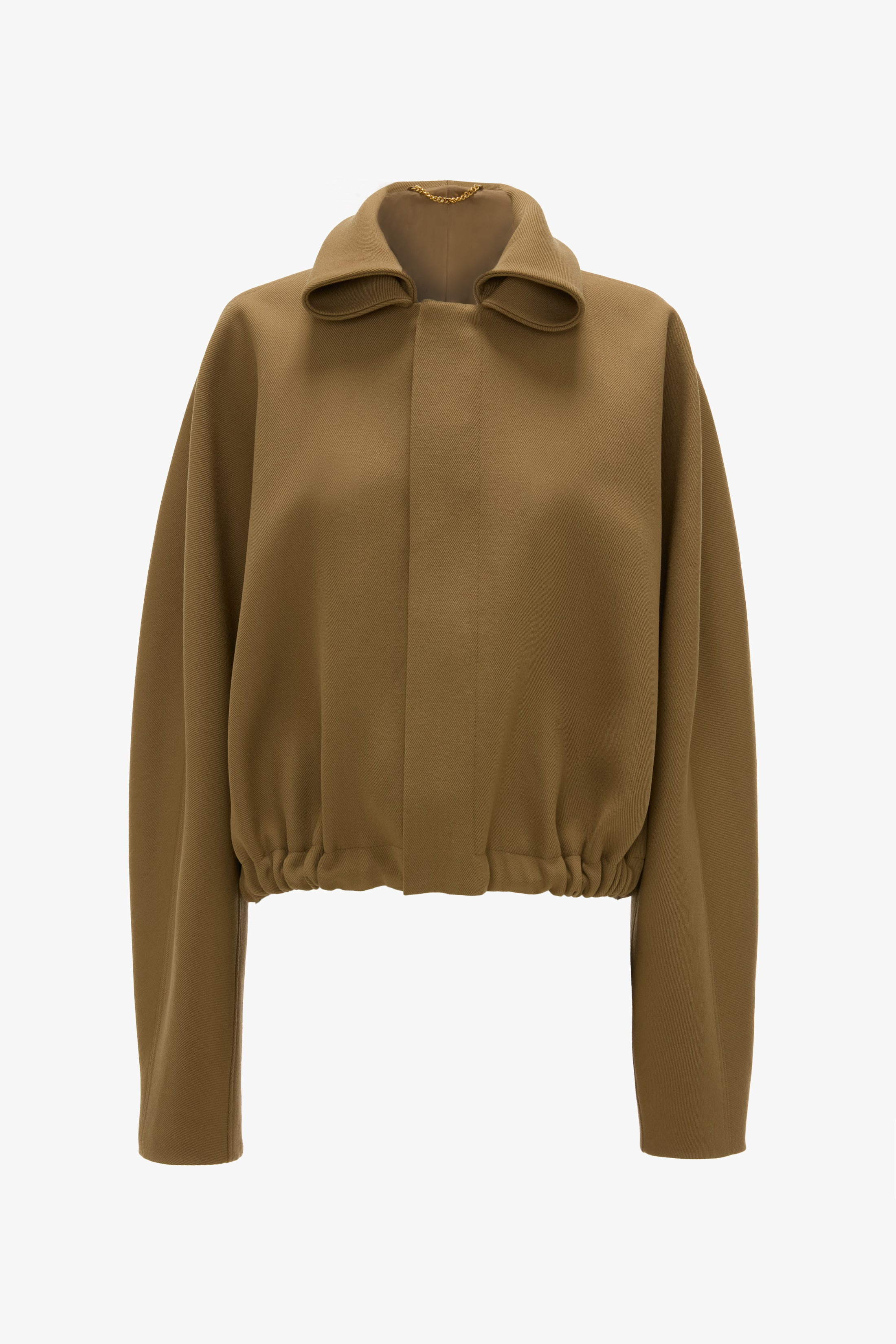 Oversized Roll Neck Bomber Jacket In Dark Camel