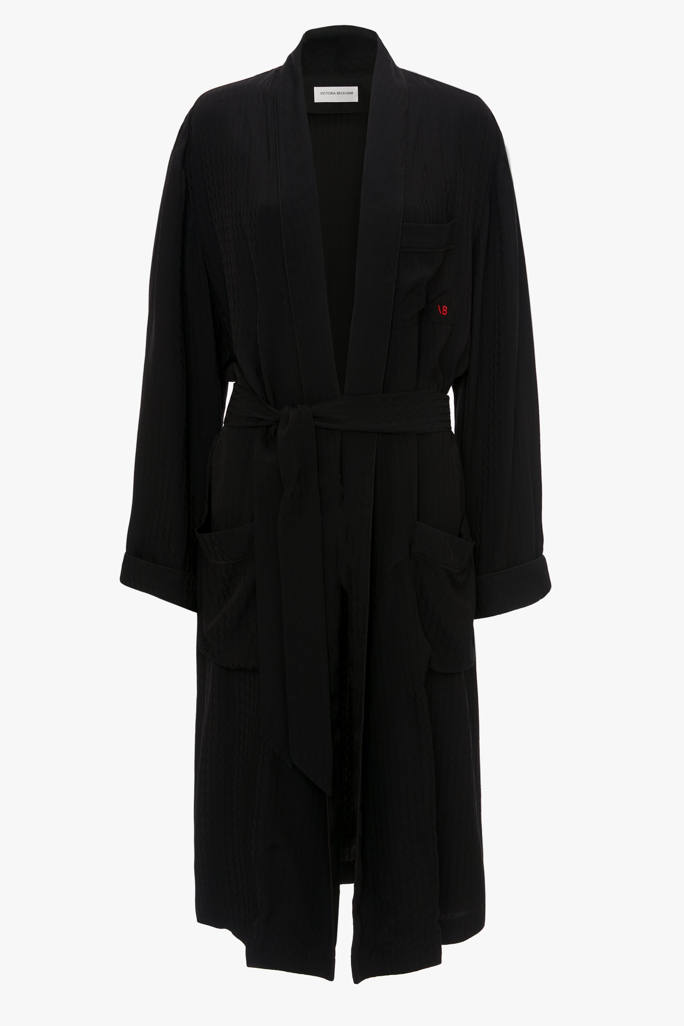 Designed for a relaxed fit, the Pyjama Robe in Black has a laid-back attitude. Meticulously made with elevated design details, including a curved collar, piped hemline finish and front patch pockets. Printed with the house’s signature VB monogram, it is an elegant throwover for everyday. Styled with the VB Monogram Pyjama Sleep Set In Black Size & Fit - Midi length: 83cm - Fits true to size, take your regular size - The model height is 178cm and is wearing a size 6 Product Details - Soft silk fabrication - 65% Viscose 35% Modal - Dry clean only - Made In Portugal