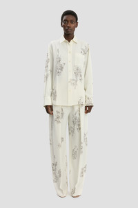 A pretty floral design brings a feminine point of difference to the Pyjama Shirt’s boyish undertone. Defined by a softly structured silhouette, it has patch pockets, cuff plackets and a back yoke with tonal topstitching. It is an elevated take on the everyday. Size & Fit - Oversized fit: This style is designed to create an relaxed silhouette - The model is 5'11’’/180cm and is wearing a size 6 Product Details - Printed sable cady fabrication - Back yoke with tonal topstitch - Singular button cuffs - Patch pocket - Contrast VB logo embroidery - 100% Viscose - Made in Portugal