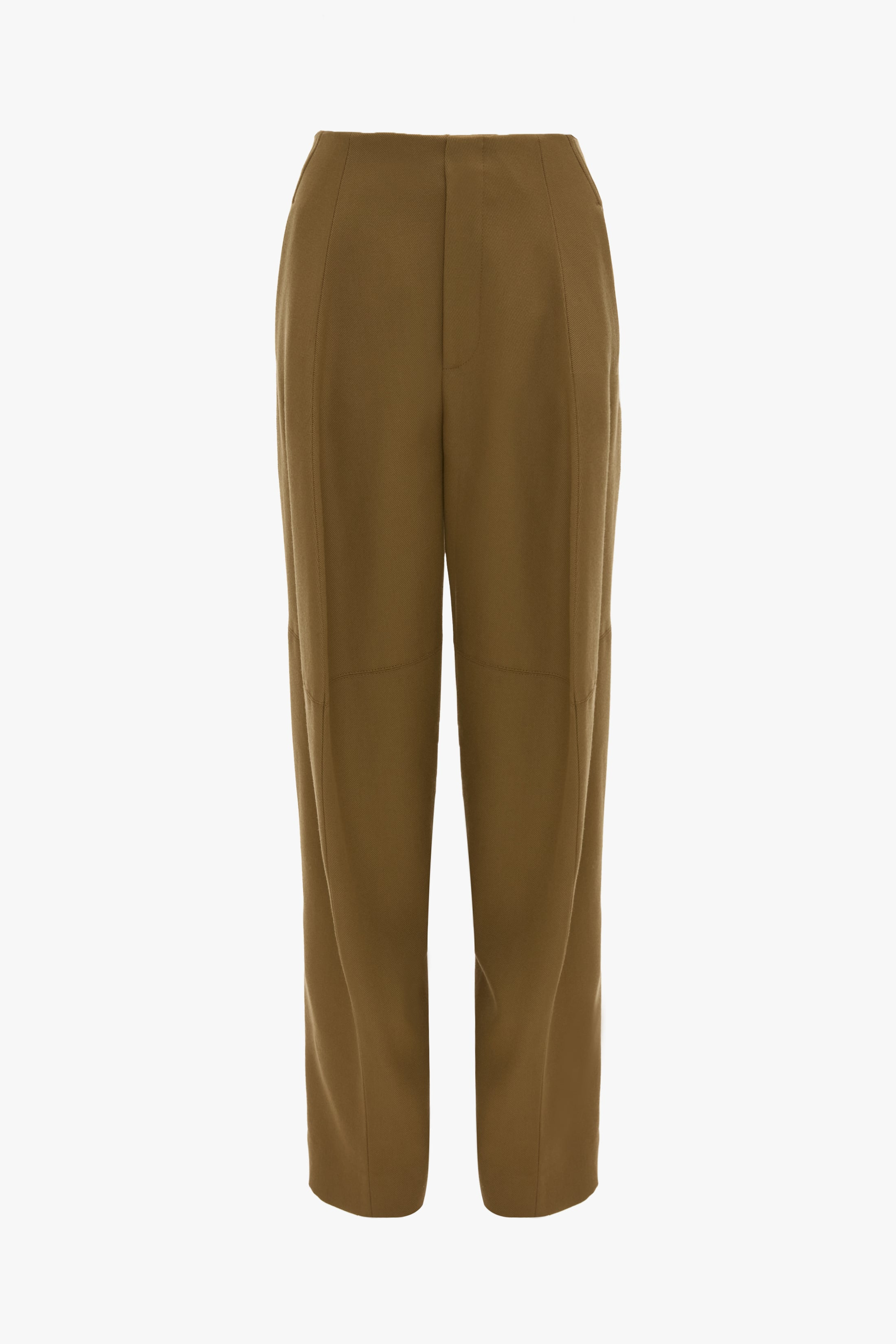 Known for its architectural tailoring, the house introduces the Sculptural Leg Trouser to its edit. Crafted from a heavy gabardine, the trouser is characterised by distinctive curved seams at the front and back legs. A high-rise cut and back dart detail create a waist-defining silhouette, while slanted pockets have a streamlined effect. Presented in versatile Dark Camel, the Sculptural Leg Trouser is a contemporary classic. Size & Fit - Fits true to size, take your regular size - The model height is 5'11’’/180.5cm and is wearing a size 6 Product Details - Soft Heavy Gabardine fabrication - High rise - Slanted pockets - Back dart detail - 100% Virgin Wool - Dry Clean Only - Made in Lithuania
