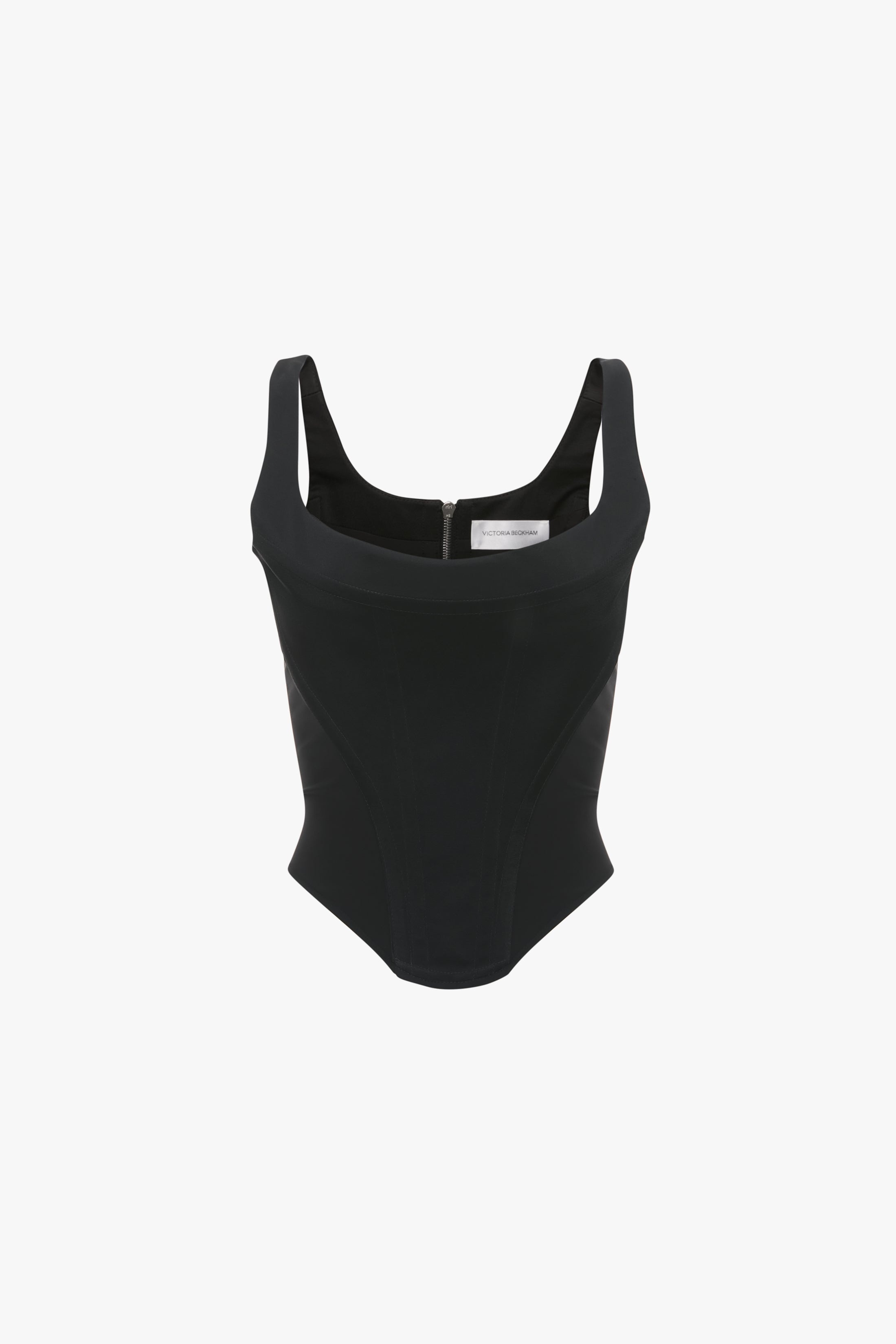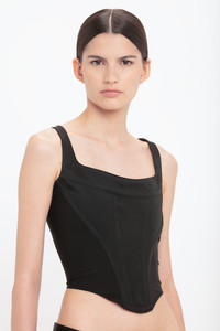 Crafted to create a classic hourglass silhouette, the Side Panel Corset Top reflects the house’s reputation for meticulous tailoring. Made from crepe back satin, it is fully lined and has boning on the front and back body panels for a corset effect. A V-shaped waistline adds a distinctive talking point, while matt crepe back satin side body panels bring a subtle textural contrast. An exposed back metal zip completes the look. Size & Fit - Fits true to size, take your regular size - The model height is 5'10''/179cm and is wearing a size 6 Product Details - Short corset top - Matt crepe back satin side body panels - Corset construction with boning on front and back body panels - Fully lined - Non-adjustable straps - Back metal zip - 71% Acetate 29% Viscose - Dry clean only - Made In United Kingdom