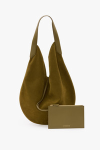 Size & Fit - Height: 45cm - Width: 38cm - Depth: 10cm - Suede fabrication - Unlined - Removable flying pocket - 100% Calf Leather - Product Care: Gently brush off any loose dirt with a soft brush, or wipe the entire surface with a clean, damp cloth. Avoid brushing too hard. Do not apply any leather conditioner or polish, as this may discolour the suede and alter its soft texture. - Made in Italy A crescent-shaped body and slouchy silhouette imbue the Soft Plie Hobo with a tactile sensibility. Crafted from suede leather and presented in an earthy shade of Cactus Green, it has a single shoulder strap and removable flying pocket for added convenience.