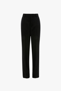 Meticulously tailored from grain de poudre, the Straight Leg Tailored Trouser in classic Black is fully lined and has a mid-rise cut with front leg pleats. Classic suiting design codes such as side pockets, back jet pockets and belt loops complete the look. Size & Fit - The model is 5'11’’/180cm and is wearing a size 6 - Fits true to size, take your normal size Product Details - Straight leg - Mid rise - Grain de poudre fabrication - Zip fly wit double hook & bar closure - Fully lined - Belt loops - Front leg pleats - Side Pockets - 55% Polyester 45% Virgin Wool - Made in Lithuania