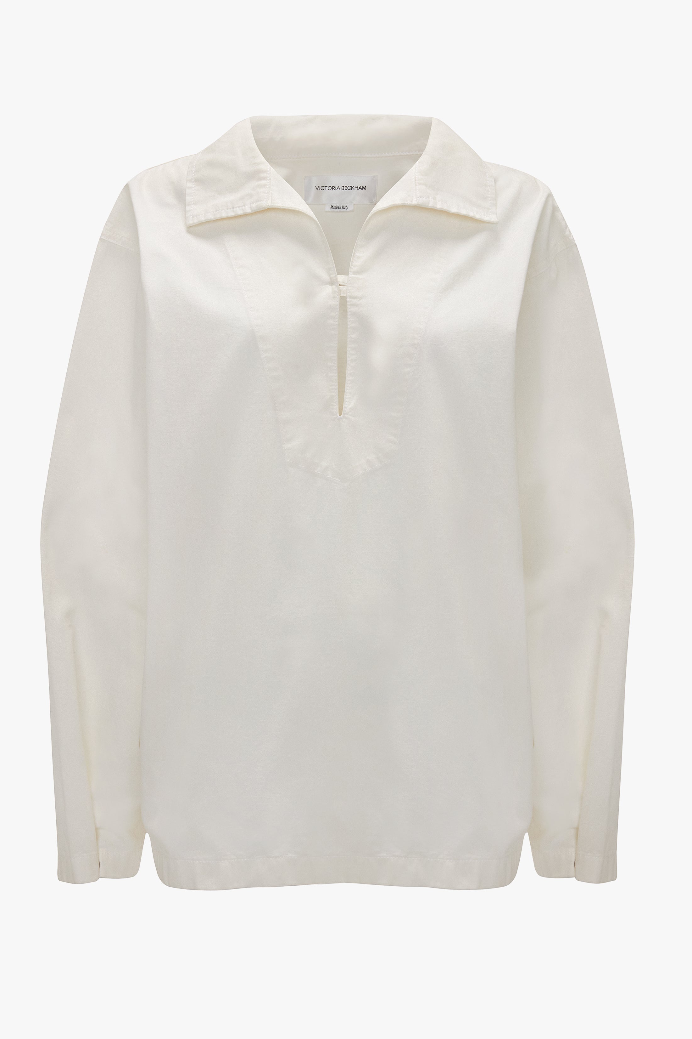 A unique reimagining of the traditional denim shirt, the Tab Detail Denim Top is characterised by a front opening with internal button and rouleau loop closure. Traditional utilitarian details include snap buttons at the cuffs and tobacco topstitching, while the Washed White colourway adds an elevated and modern sensibility. Size & Fit - The model height is 5'11"/180cm and is wearing a size UK 6 - Customers who desire a more fitted silhouette may wish to size down Product Details - White wash denim - Front opening with internal button and rouleau loop closure - Tonal topstitching with a contrast tobacco topstitch along the back yoke seam - 100% Cotton - Machine wash at 30C - Made in Italy