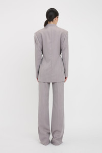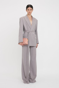 One of Victoria’s picks for SS25, the Tailored Belted Jacket embraces a feminine take on traditional suiting. A longer-length narrow fabric belt allows for versatile styling, creating a defined waistline when tied and elongating the silhouette with its ankle-grazing drop. Sharp creases down the front and back sleeves bring a hint of formality, while front patch pockets add an attractive and practical design detail. The muted shade of Quartz makes this a great transitional piece. Size & Fit - Fits true to size, take your regular size - The model height is 5'10''/179cm and is wearing a size 6 Product Details - Soft tailored jacket fabrication with belt - Concealed button closure - Half lined - Internal chest pocket - External chest pocket with welt - Patch pockets at the front with contrast white pocket flap lining - Sharp creases on front & back sleeve - 100% Wool - Dry clean only - Made In Portugal