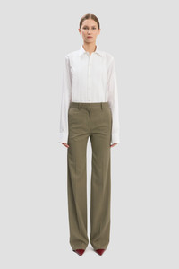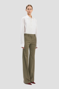 Meticulously tailored in a wool blend and presented in attractive Sage, the Tailored Straight Leg Trouser is a classic wardrobe staple. Cut with a high-rise waistline and straight leg and with slanted front pockets, it has a streamlined silhouette that looks effortlessly polished. Size & Fit - Fits true to size, take your regular size Product Details - Fresh wool melange tailored straight leg trouser - High rise - Straight Leg - Belt loops - Double hook & bar closure with zip fly - Side Pockets - Back welt pockets - 50% Wool 50% Polyester