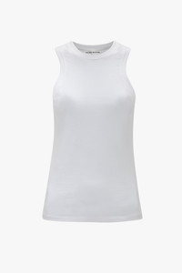 A foundational piece in any wardrobe, the Tank Top in White is made from super-soft 100% organic cotton with a ribbed neckline and armhole trims. A relaxed racer-back design brings an athleisure-inspired nonchalance to the piece, while a contrasting Victoria Beckham monogram at the centre back neckline adds an elevated finishing touch. Size & Fit - Fits true to size, take your regular size - The model height is 179 / 5'10 and is wearing a size XS Product Details - Organic cotton fabrication - Contrast monogram branding at centre back neckline - Ribbed neck and armhole trims - Classic round neckine - Relaxed racer back - 100% Organic Cotton - Machine wash at 30C - Made in Portugal
