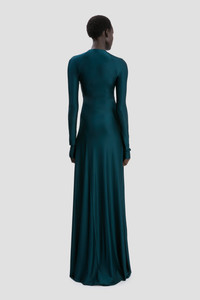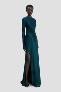 The Twist Waist Gown’s demure silhouette is imbued with dramatic flair by virtue of a floor-pooling hemline and sensuous knotted detail at the front waist. Crafted from a body-sculpting high-shine jersey, it has a side-seam split and longer-length sleeves with tactile ruching at the cuff. Size & Fit - The model is 5'10’’/178cm and is wearing a size 6 - Fits true to size, take your normal size Product Details - High shine, stretch jersey fabrication - Floor-length - Round neckline - Long sleeves with raglan armhole, styled ruched at the cuff - Knot waist detail - Skirt side split - Concealed shoulder and side zip - 90% Viscose 10% Elastane - Made in Portugal
