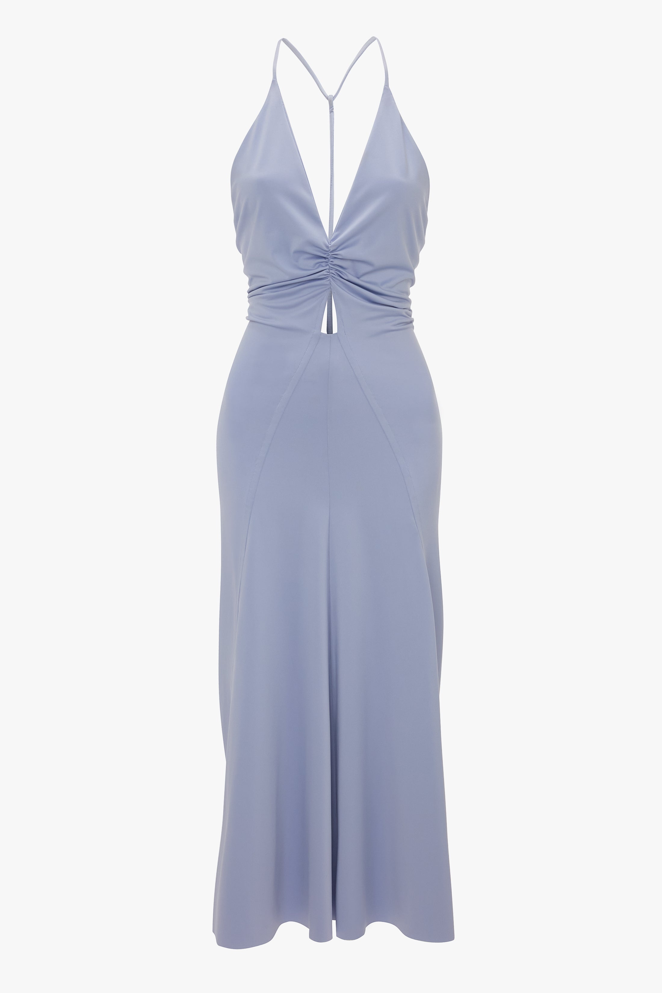 V-Neck Ruched Cami Midi Dress In Delphinium Blue