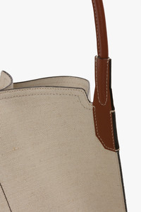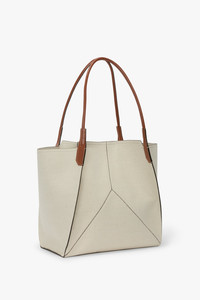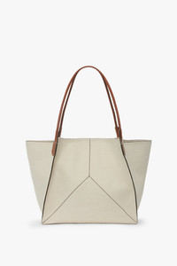 - Canvas body with shiny calf strap - Textile lining - Internal flat leather pocket - Features our signature gold branding with VB logo and a unique code - Canvas - Wipe the bag with a clean, damp cloth. - Made in Italy New to the Victoria family of leather goods, the Victoria Tote Bag now comes with a canvas body in Ivory and contrasting shiny calf strap in Tan. Defined by clean lines and discreet V stitched panels, it expresses the house’s contemporary design language. Featuring signature gold branding, including a Victoria Beckham logo and unique serial code, the Victoria Canvas Tote is finished with a textile lining and an internal flat leather pocket. SIZE & FIT - Height: 38cm, Width: 48cm , Depth: 23cm, Drop With Strap: 28cm