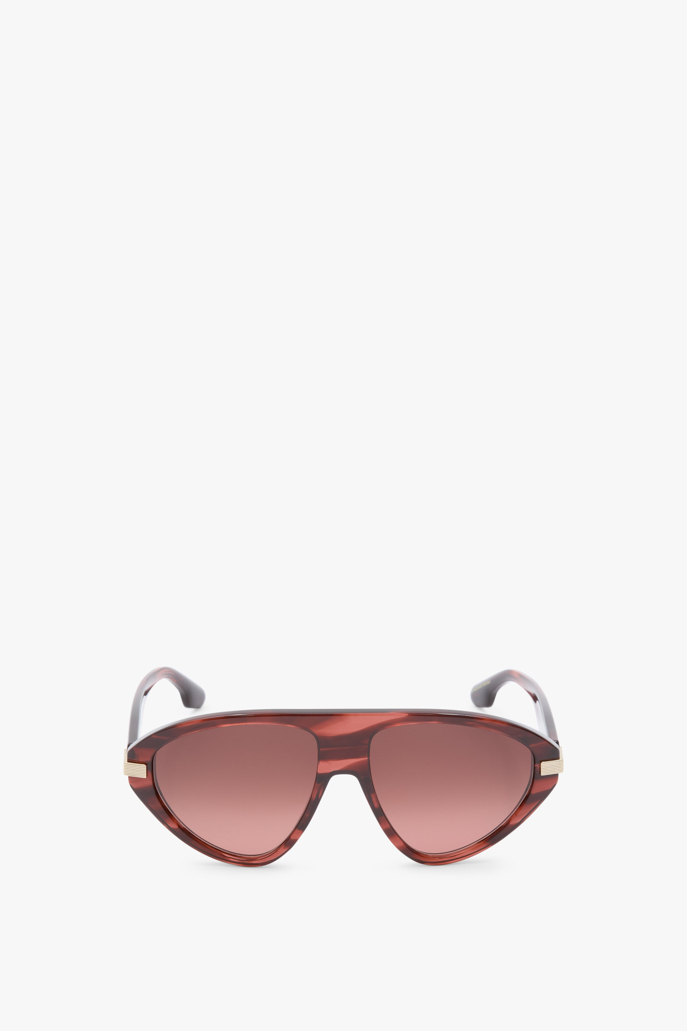 Visor Hinge-Detail Sunglasses in Striped Wine