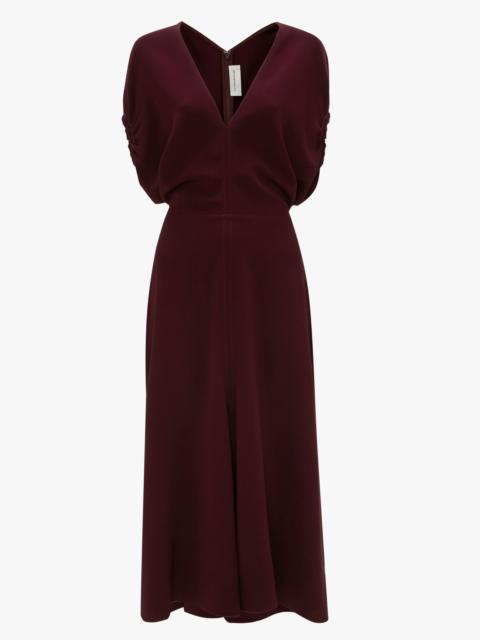 Gathered Waist Midi Dress In Soft Burgundy Leather