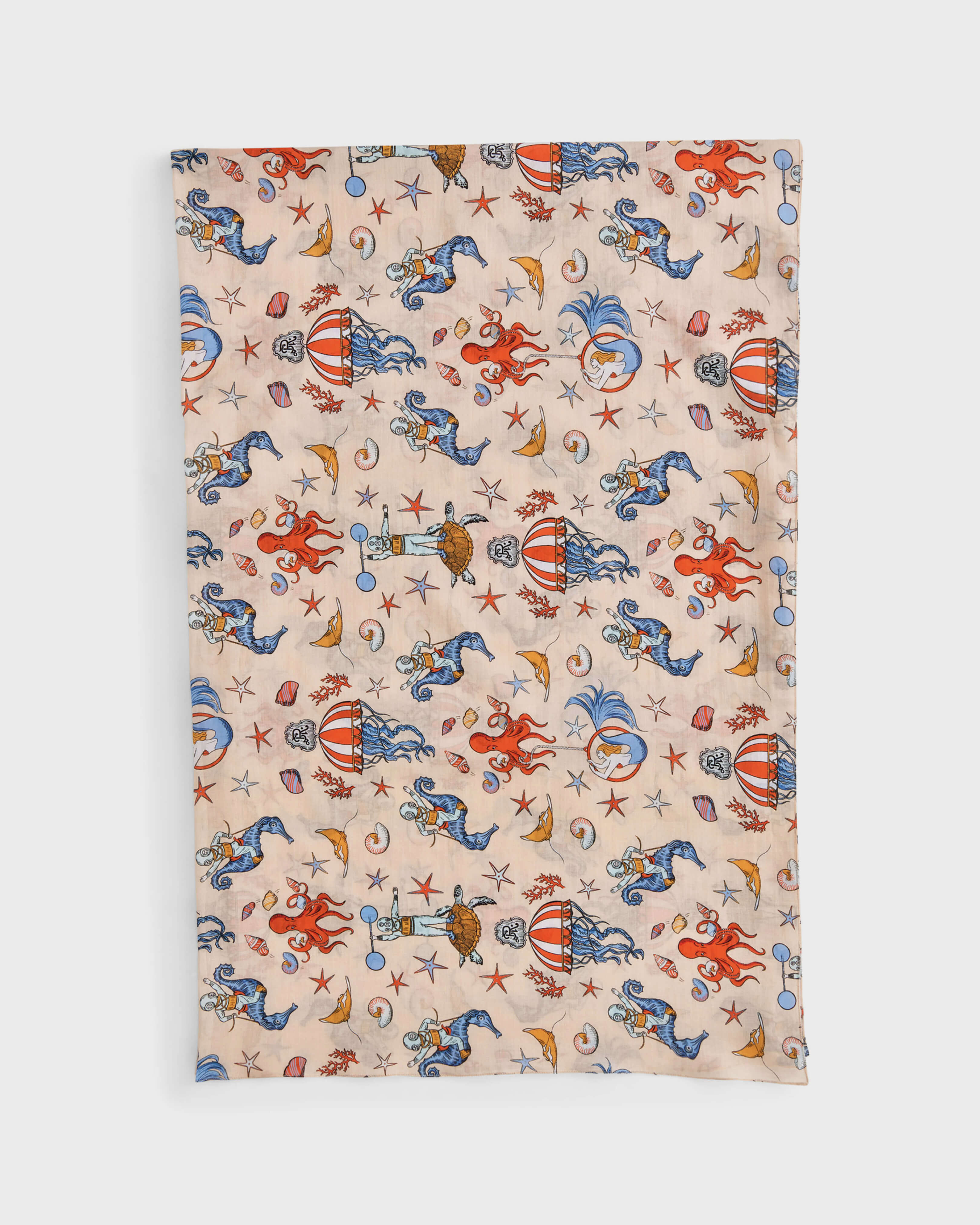 Product Detail Vilebrequin, renowned for its exceptional craftsmanship and dedication to elevating the art of beach living, is set to open a new boutique within the prestigious St. Regis Resort in Longboat Key. To mark the occasion, an exclusive capsule collection of swimwear and beach accessories was imagined, featuring a marine-inspired print that playfully nods to Sarasota’s historic connection to the Ringling Bros. circus. - Cotton voile pareo - Comes in a small printed bag for easy transport - Vilebrequin for St. Regis Label - Sizes : 180 X 117 cm - Cotton Pareo - Cotton Pareo Aqua Circus - 100% Organic Cotton Care To take care of your favourite Pareo, we advise you to follow our suggestions below: - Wash your Pareo at 86F with like colors. - Do not use oxygenated or chlorine based bleach/ stain removers. - Air-dry your Pareo and do not use tumble dryer. - Regular steam or dry iron inside out, with maximum setting at 230F. - Do not dry clean your Pareo.