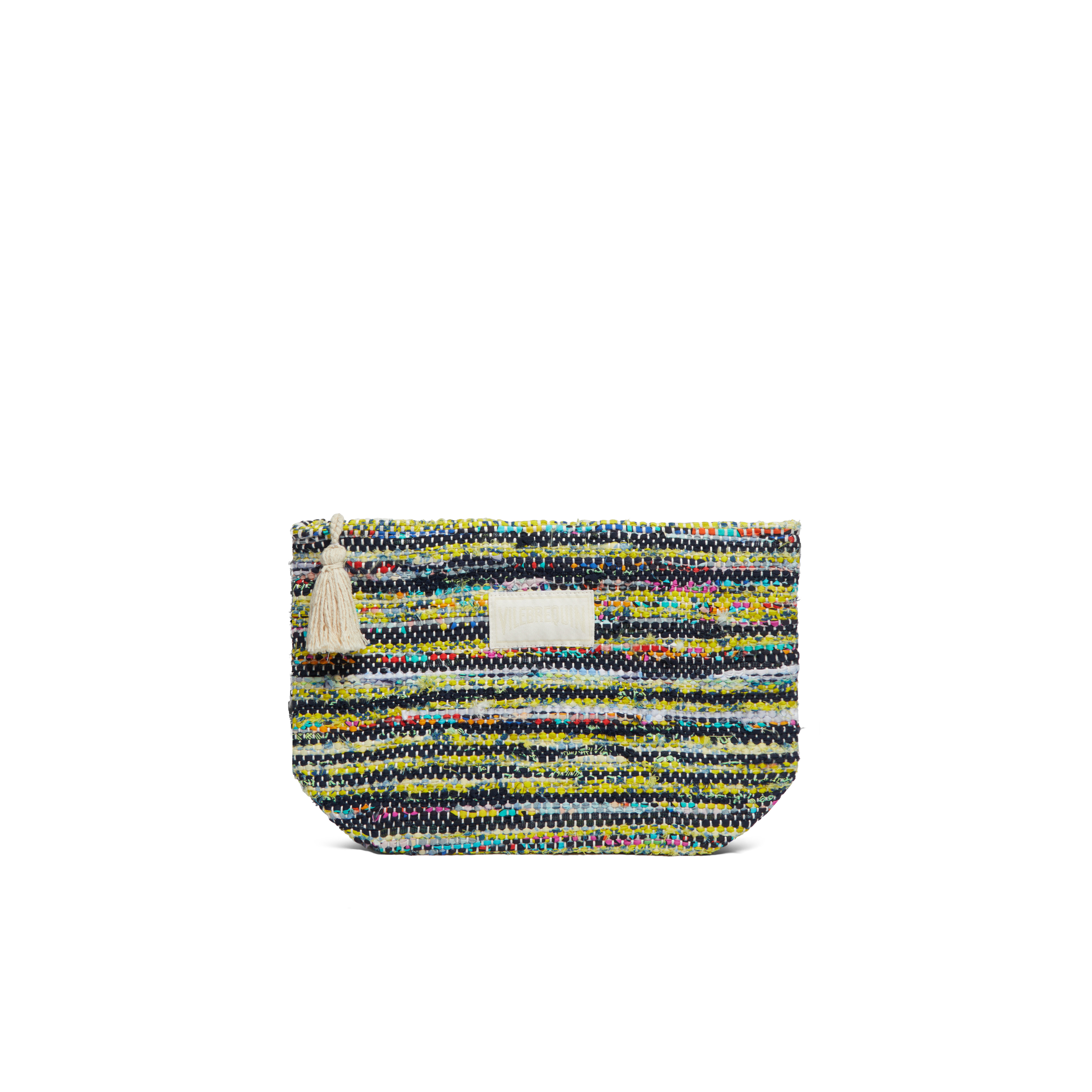 Keep things organized with the Pamboo beach pouch, made from recycled fabric off-cuts. Packed in a suitcase or shown off on a beach bag, the fashionable look of its hand-woven textured this fabric the accessory of the summer. It closes with a zip decorated with a pompom and the Vilebrequin logo. Keep things organized responsibly with the eco-friendly unisex Pamboo beach pouch, made from recycled fabric off-cuts. Packed in a suitcase or shown off on a beach bag, the fashionable look of its hand-woven textured this fabric the accessory of the summer. It closes with a zip decorated with a pompom and the Vilebrequin logo. - Closed by a zipper - External bias and Vilebrequin logo washable leather - Combine a weaving method based on ancestral Moroccan "know-how" and the recycling of our swimsuit materials - Pictures may differ from actual product. Each pouch is unique - Sizes: 23 cm X 16 cm - Recycle material - Unisex Beach pouch Eco-Friendly - Solid Unisex Beach pouch Eco-Friendly - 100% Textile Product Information Style: Pamboo Model: PBOU0128-000 Color: UNIQUE / MULTI