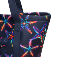This summer's Disco Stars print embellishes this eye-catching beach bag. Enhanced with a zamak-tipped zipped inside pocket and the Vilebrequin logo for the ultimate in sophistication. - Printed Neoprene fabric Beach bag - Two cotton handles - Closed by a plastic zipper and two zamac tips etched Vilebrequin - One inside pocket zipped with a plastic zipper, two zamac tips etched Vilebrequin - Unlined, finished with a tone on tone bias. Internal and external snap buttons to fold bag - Sizes: 24.4" x 15.7" x 9.4" - Unisex Beach bag - Unisex Beach bag Disco Stars - 100% recycled Product Information Style: Bagsib Model: BSBC0207-390 Color: NAVY / BLUE
