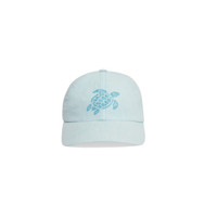 Offering sun protection and style, this lightweight linen cap has an adjustable back buckle. Printed with the classic turtle on the front and the iconic Vilebrequin logo at the back. - 6-panel baseball-style cap - Plain linen with turtle print on front and Vilebrequin logo on back - Lightweight and breathable thanks to linen - Nickel-colored metal eyelet on back - Metal back buckle for size adjustment - Unisex Baseball Cap - Unisex Cap Solid - 100% linen Product Information Style: Camo Model: OMAC1304-315 Color: PACIFIC / BLUE
