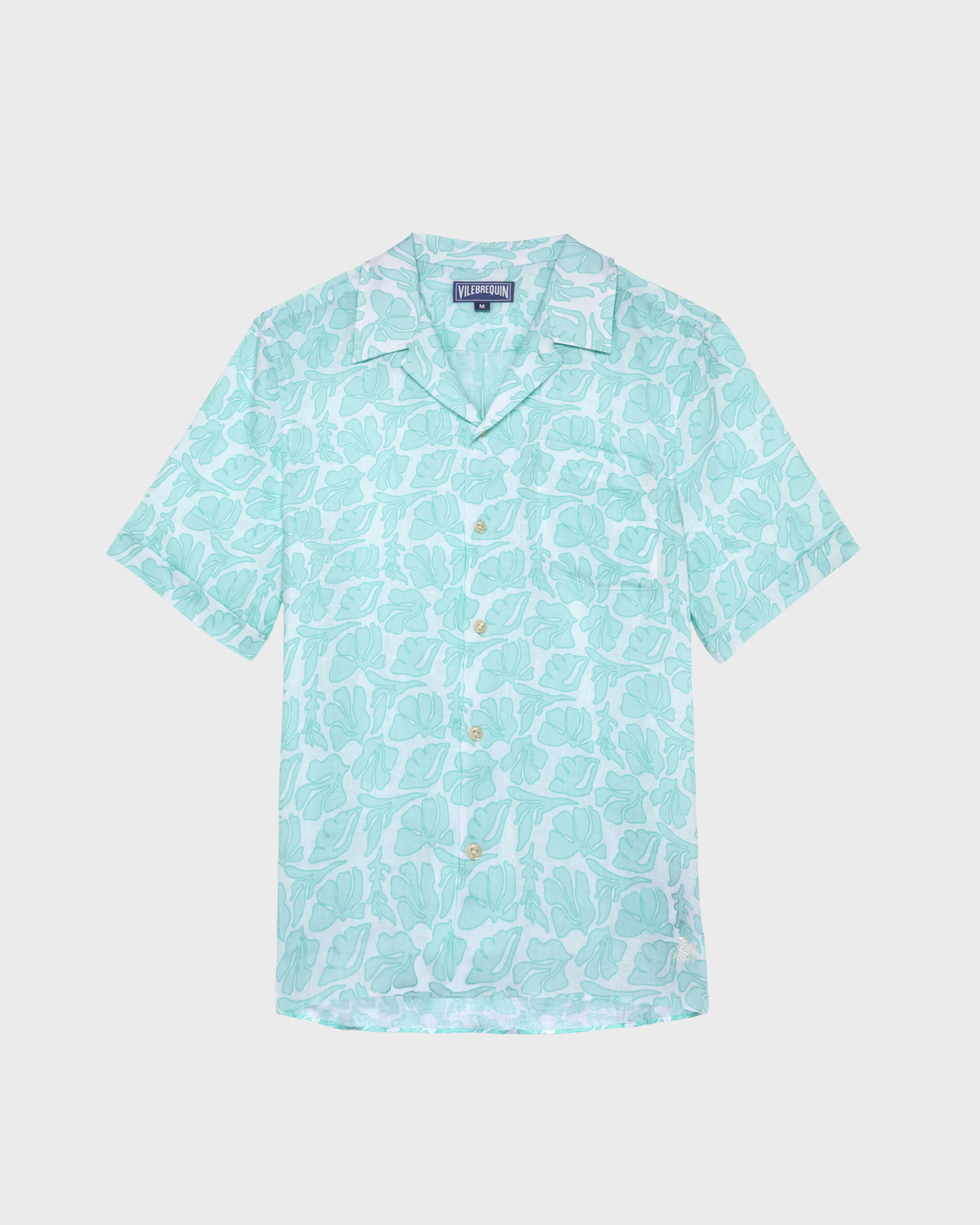 Product Detail 100% linen Perfect for alfresco events, this bowling shirt is crafted in cool linen. Designed in a West Coast-inspired Seashells family print for a touch of marine-influenced style. - Bowling shirt - Short sleeves with turned back cuffs - Chest pocket - Two slits on each side - Embroidered turtle tone on tone on the bottom left - Button fastening - Middle back length for a size M: 29.13" - The model is 6' and wears a M size - Men Shirt - Men Shirt Seashells Care To take care of your Shirt we advise you to follow our suggestions below: - Wash at 30'C - Dry line in the shade - Do not bleach - Do not tumble dry - Iron at medium temperature