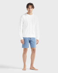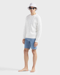 Product Detail A soft, comforting cable-knit cotton sweater with a timeless round neck and ribbed edges at the cuffs and hem. Perfect for wrapping each moment in elegance, it embodies the simplicity of an essential piece. - Crew-neck jumper for men - Soft cotton - Ribbing at the collar, cuffs and waist - Men Sweater Solid - Men Sweater - 100% cotton Care To take care of your favourite pullover, we advise you to follow our suggestions below: - Wash your pullover at 30°C delicate with similar colors. - Do not use oxygenated or chlorine-based bleach/ stain removers. - In the shade, dry flat your pullover and do not use tumble dryer. - Regular steam or dry iron, with maximum setting at 150°C. - PCE only