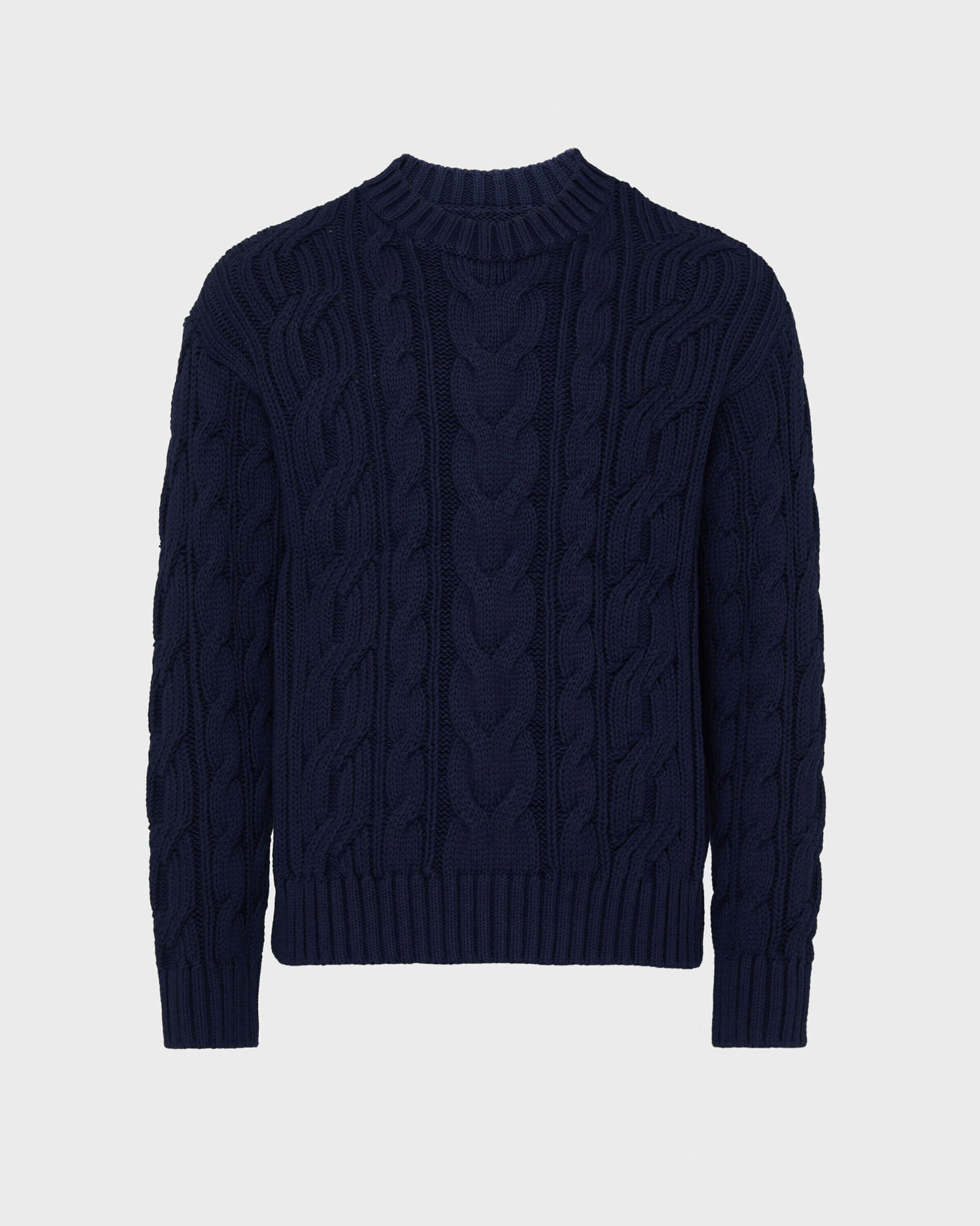 Product Detail A soft, comforting cable-knit cotton sweater with a timeless round neck and ribbed edges at the cuffs and hem. Perfect for wrapping each moment in elegance, it embodies the simplicity of an essential piece. - Crew-neck jumper for men - Soft cotton - Ribbing at the collar, cuffs and waist - Men Sweater Solid - Men Sweater - 100% cotton Care To take care of your favourite pullover, we advise you to follow our suggestions below: - Wash your pullover at 30°C delicate with similar colors. - Do not use oxygenated or chlorine-based bleach/ stain removers. - In the shade, dry flat your pullover and do not use tumble dryer. - Regular steam or dry iron, with maximum setting at 150°C. - PCE only