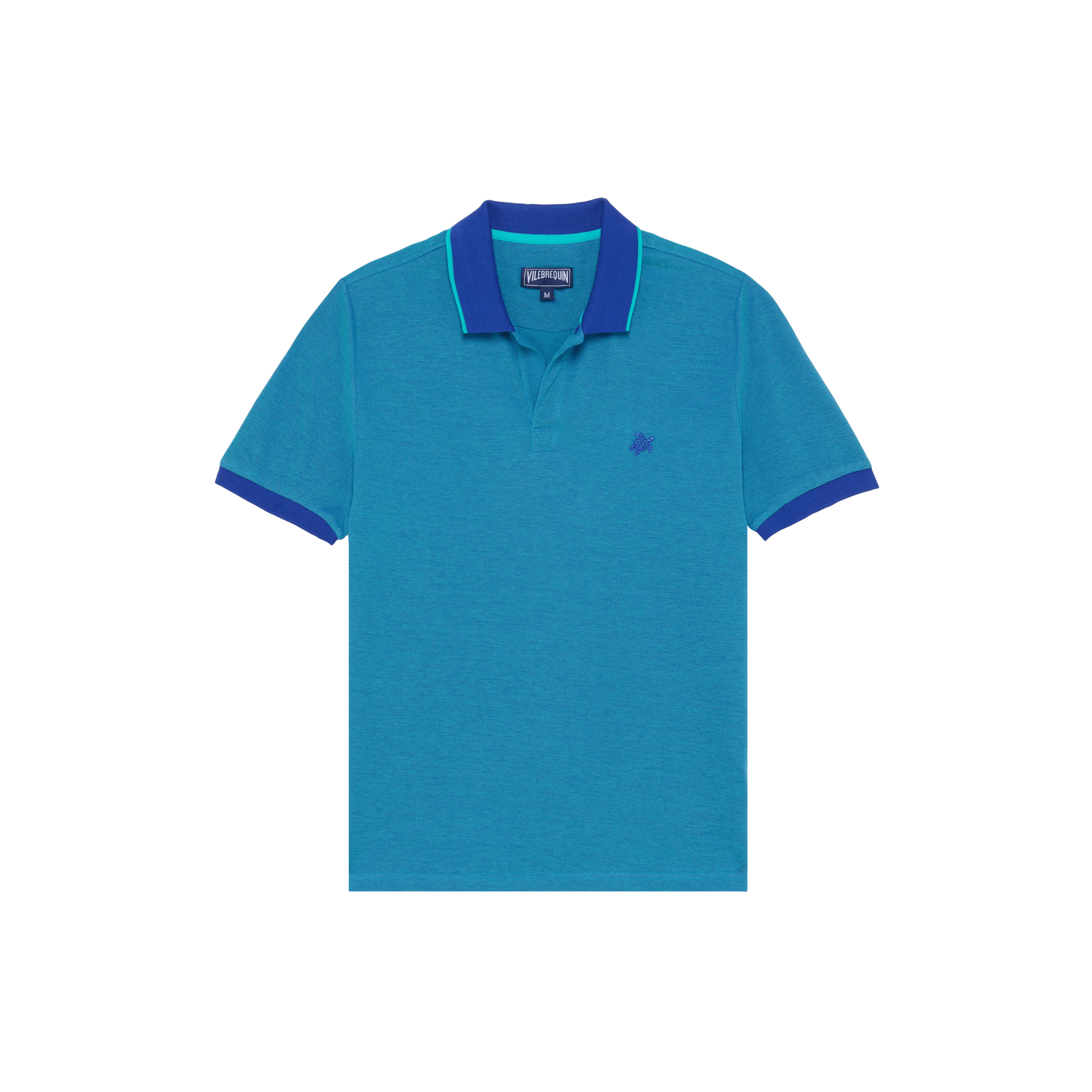 A timeless addition to the summer wardrobe, this organic cotton polo features ribbed cuffs and collar, short sleeves and the iconic turtle embroidered on the chest. - Cotton Pique polo with ribbed cuffs and collar - Short sleeve with no buttons on front placket - Tone on tone embroidery turtle Logo on chest and printed "Vilebrequin" logo under collar - Center back Signature pair of eyelets - Colour changing thread worked into the contrasts of the collar - Middle back Length for a size M: 27.75" - Men Polo - Men Polo Solid - 100% Organic Cotton Product Information Style: Palan Model: PLNAN300-613 Color: MARRAKECH / BLUE