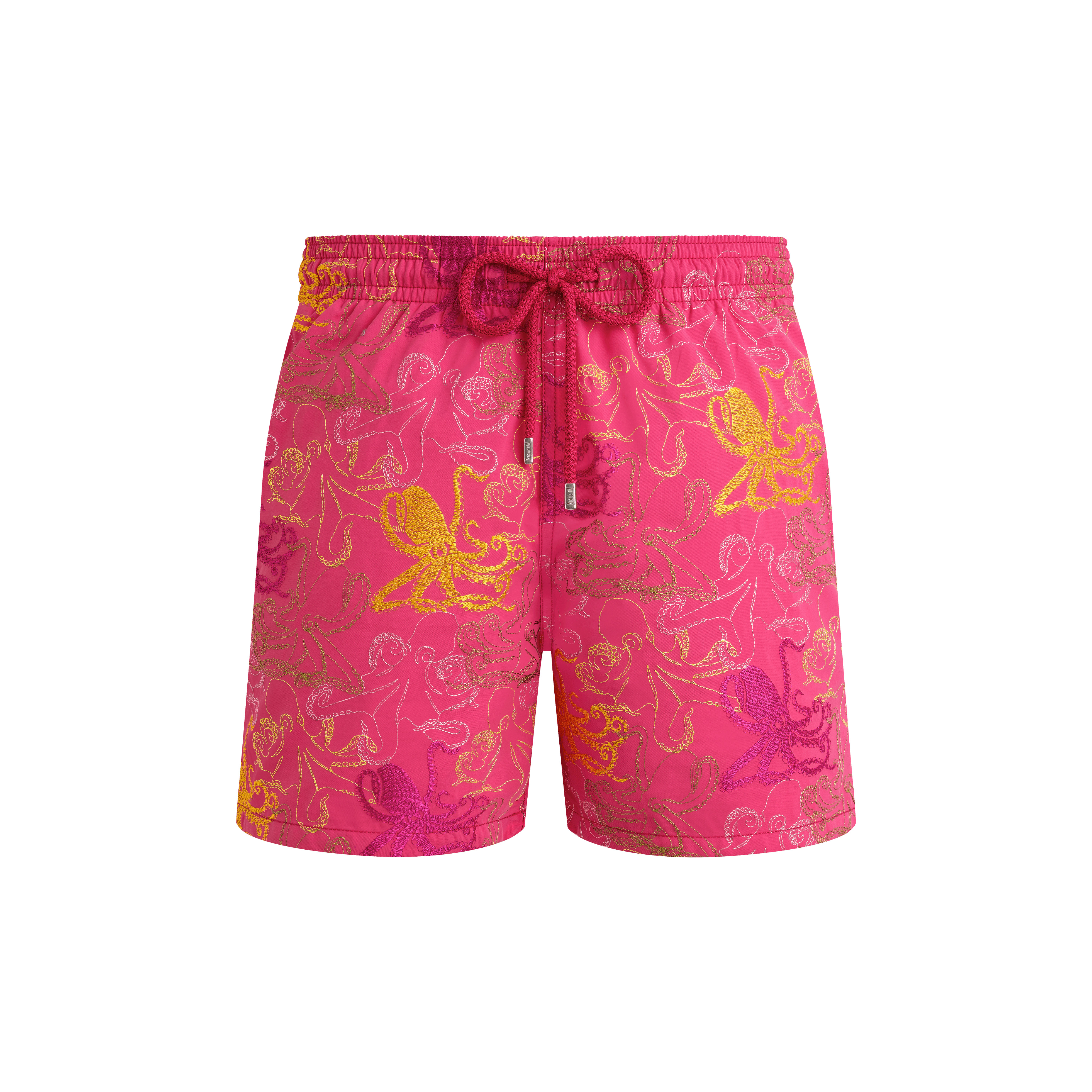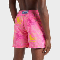 Octopuses have tangled their tentacles on the all-over embroidery of these Mistral Octopussy men swim trunks. These limited edition men's embroidered swimming trunks have a back pocket fastened by an engraved press stud. Certified sterling silver tips adorn the drawstring. - Embroidered fabric, numbered limited edition to 130 copies - Men swim trunks with elastic waistband with drawstring and silver tips (engraving 925 certified) - Enjoy a complimentary first repair of your swim shorts, if registered within 6 months. - Side pockets and back pocket with Turtle personnalized round snap button - Men swim trunks with two back eyelets - Side leg length in size M: 15.6" - Men swim trunks - Men swim trunks Octopussy - Model wears size M - Model measurements: Bust 38.6”, Height 72.4”, Waist 30.7”, Hips 36.2” - 100% Recycled polyamide Product Information Style: Mistral Model: MISC3C01-167 Color: BOUGAINVILLEA / PINK