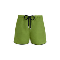 Offering ultimate sophistication, these lightweight swim shorts are created from linen and feature an elasticated waist with a drawstring tipped with the iconic Vilebrequin logo engraving. - Men swim trunks Crafted from breathable linen for unmatched comfort and style in and out of the water - Swimwear with elastic waistband and drawstring to tie - Two side pockets - Light fabric - Fully lined with water-resistant mesh lining (100% polyamide) - Side leg Length in M: 13,3" - Inseam in size M: 4.33" - Vintage inspiration - Inspired by the founder Fred Prysquel's originals Vilebrequin swimwear - The model is 6'0.83" and wears a M size - Men Swim Trunks - Men Swim Trunks Solid - 100% linen Product Information Style: Maurice Model: MCECL400-427 Color: CAMOUPLAGE / GREEN