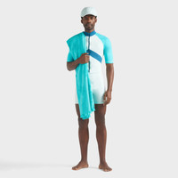 This all-in-one short rashguard protects and reflects style. Fashioned from stretch jersey for a comfortable fit and featuring a front zip for easy on and off. - Short UV protection One-piece men swimsuit - Solid tricolored stretch jersey - 3/4 sleeves - Zip-up front - High collar - Ultra-soft and comfortable - The model is 6'1.62" and wears a M size - Men One-piece Rashguard - Men Rashguard Tricolore - 80% polyamide 20% elastane Product Information Style: R-stripe Model: RSRCR178-344 Color: BLUE NOTE / BLUE